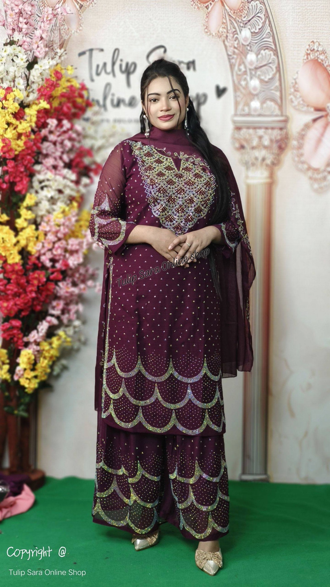 - ফেব্রিক: হোয়াইট গোল্ড জর্জেট