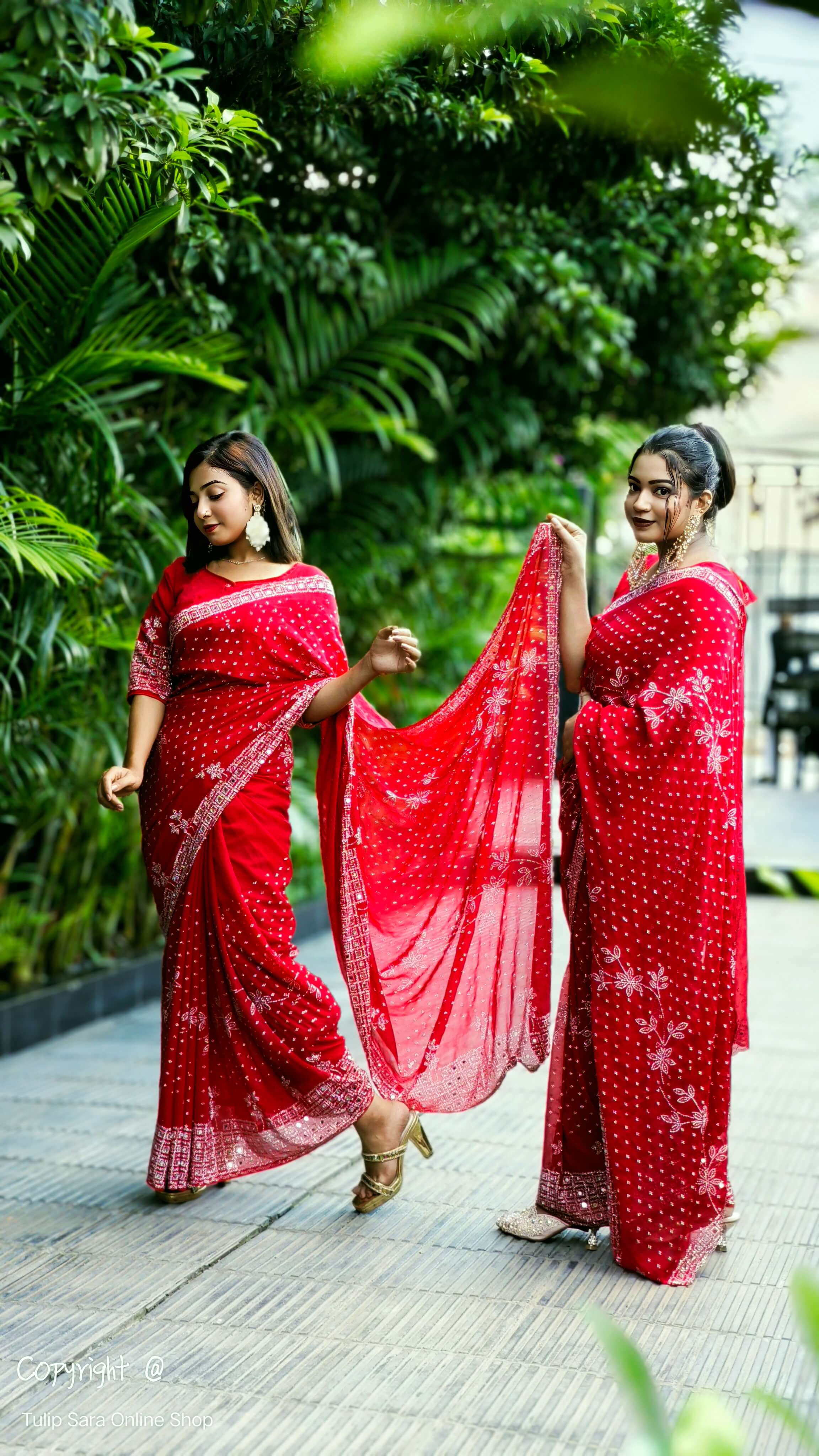 গর্জিয়াস সার্ভাস্কি স্টোন শাড়ি💙💙 (ব্লাউজ পিস সহ )